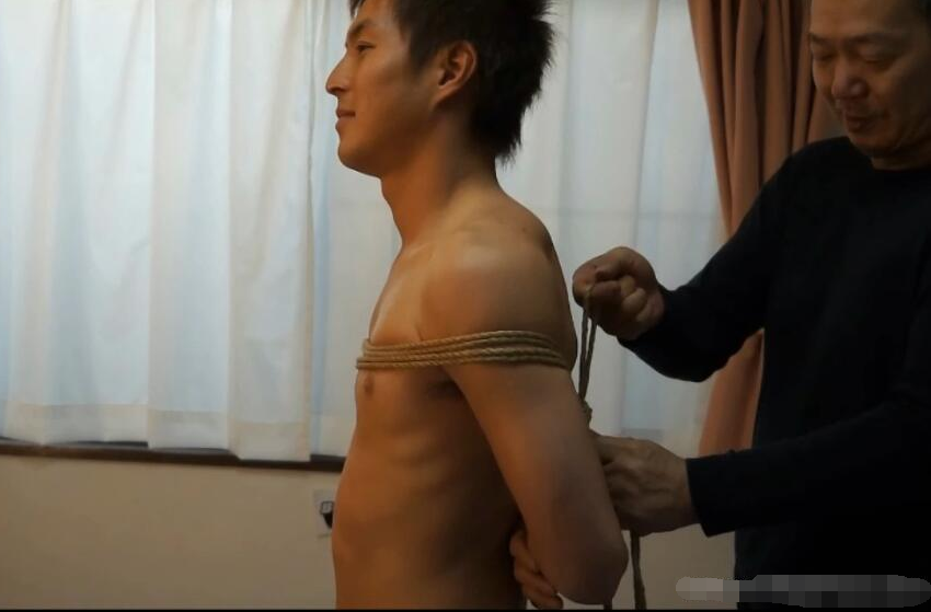 壮汉健壮大叔在家中进行捆绑束缚教学