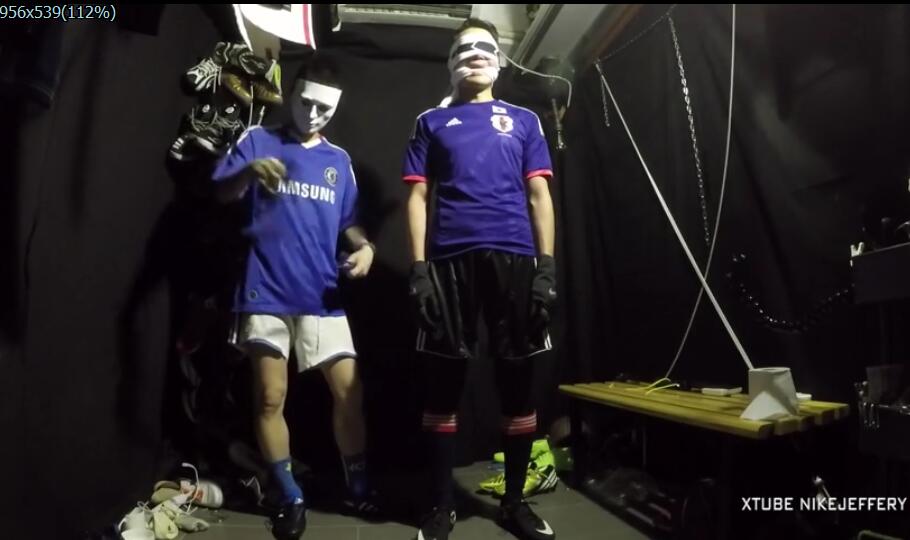 两痞子爷们调教学生奴赤裸胯下舔脏鞋吃臭脚